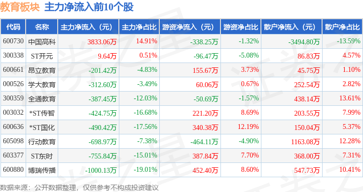 从资金流进取来看,当日讲解板块主力资金净流出2.84亿元,游资资金净流入2905.94万元,散户资金净流入2.54亿元。讲解板块个股资金流向见下表: