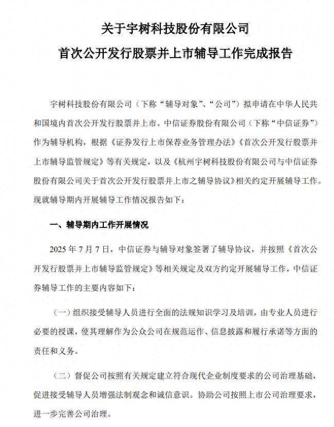 11月15日,中国证券监督治理委员会网上服务服务平台,透露了对于宇树科技股份有限公司初度公开刊行股票并上市教悔责任完成叙述。该叙述由浙江证监局派出。现在宇树科技处于教悔验收阶段。